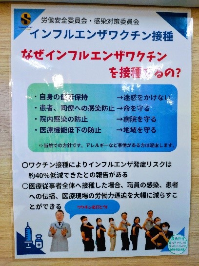 当院では、外来患者さんへのインフルエンザ予防接種が健康管理課で始まり、職員向けの接種もスタートしました。